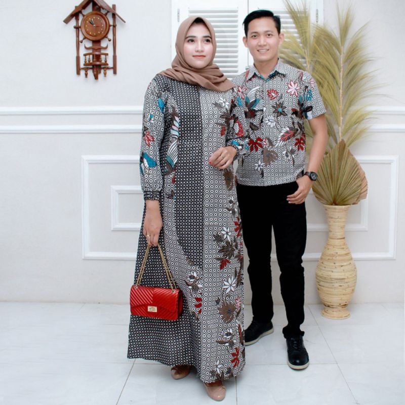 Name: Couple Gamis Batik Kombinasi Modern / Batik Couple Gamis Jumbo / Sarimbit Batik Ayah Ibu