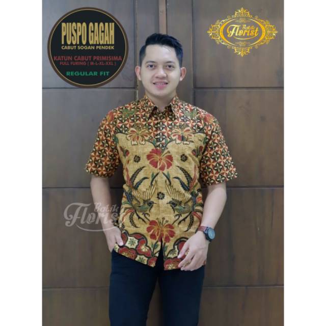 Agen Pakaian di Kabupaten Nagekeo Puspo Gagah Cabut Sogan Pendek Kemeja Batik Pria Katun Cabut Primisima Full Furing dari Tidak Ada Merek Kab. Sukoharjo