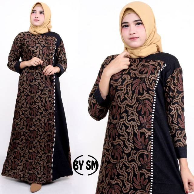 Name: Gamis Motif Daun Dress Batik Muslim Modern Cantik Buat Seragaman Kondangan Pergi Ngantor Pengajian