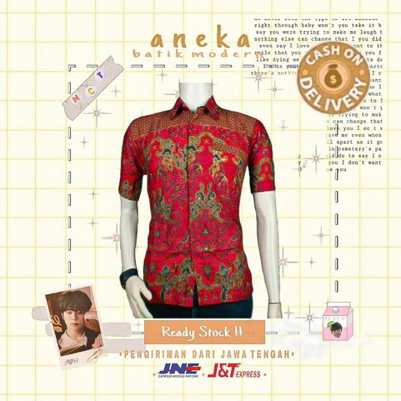 Flash Sale Pakaian di Kabupaten Manggarai Barat Hem Kemeja Batik Pria Cowok Lengan Pendek Warna Merah Casual Formal Kerja Murah M L Xl dari Tidak Ada Merek Kota Pekalongan
