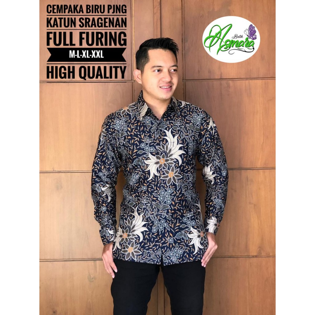 Name: Batik Solo Cempaka Biru Panjang Kemeja Pria Katun Halus Sragenan Full Furing